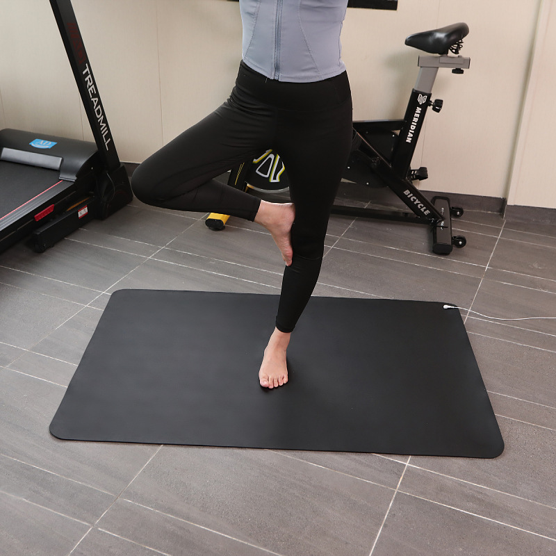 Grounding mats create a connection between your body and the earth’s electrons, establishing a neutral electrical charge even when used indoors. The grounding mat typically use carbon or silver as conductive agents and are connected via a cord to the ground port of an electrical outlet.