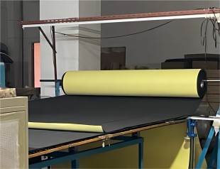 First, we prepare the mouse pad material. After that, we apply adhesive to the material’s surface. For more details, please refer to this video Self Adhesive Natural Rubber SBR Neoprene EVA Rubber Sponge Mouse Pad Material Manufacturing Process.